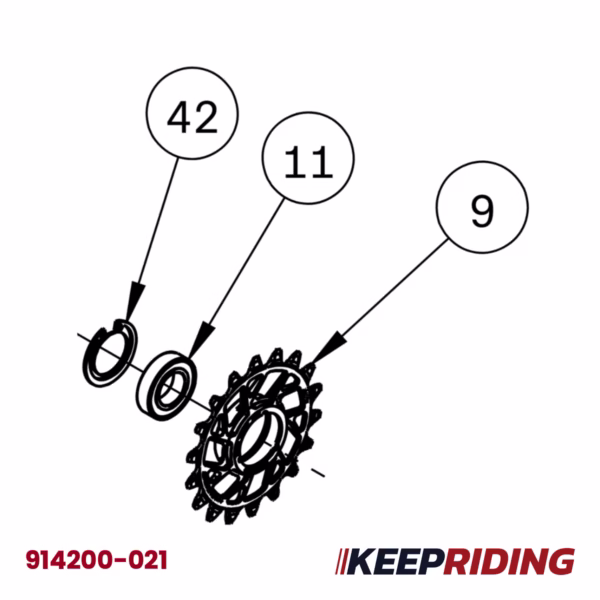 Norco Idler Pulley 18T for Sight // Optic //Range VLT with BEARING #913200-S6902 and INTERNAL RETAINING RING #914200-009 mounted.